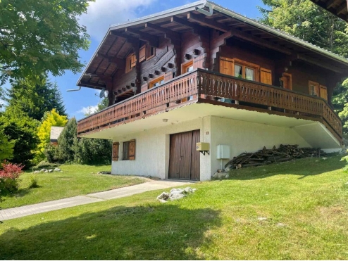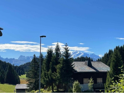 Chalet madrier exposé plein Sud avec vue sur le Mont Blanc et ensoleillement optimal