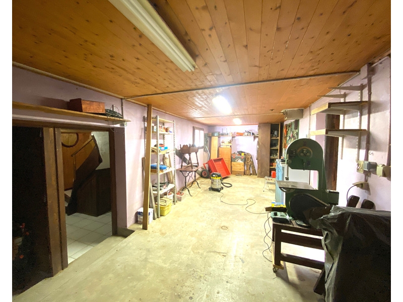 Rez de jardin : sous-sol complet avec garage, cave, atelier, salle de jeux, buanderie, wc